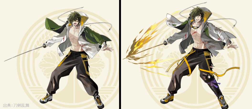 桑名江の極前後イラスト画像比較